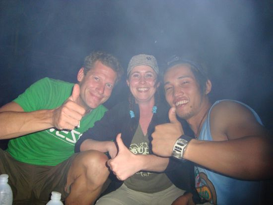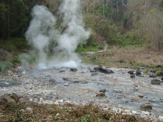 Es wurde im Wasserfall und einer heissen Quelle gebadet (nicht dieser, die hätte zu Verbrennungen geführt),