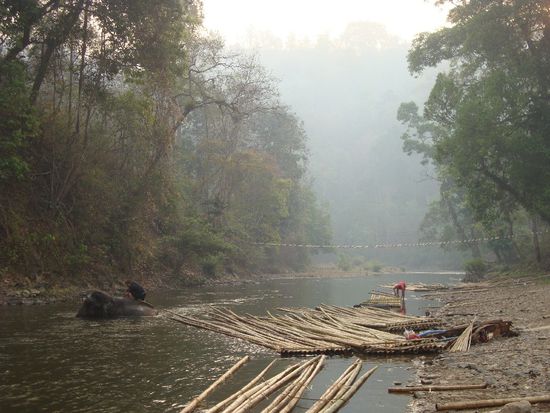 den Bambus inspeziert, der uns noch am selben Tag flussabwärts tragen sollte.