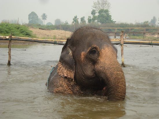 Elefantencamps sind hier auch keine Seltenheit. Der hübsche hier war aus seiner Badewanne kaum noch heraus zu bekommen.