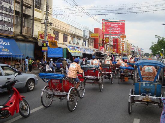 Die Halbtagesradtour am nächsten Tag führte weitere 100 km östlich nach Nakhon Ratchasima (Khorat). Ein ganz netter Ort, in dem man es auch den ein oder anderen Tag länger aushalten könnte. Jedenfalls wird abendliches Unterhaltungsprogramm auf einer Bühne im Stadtkern geboten, das sich sehen lassen kann.
