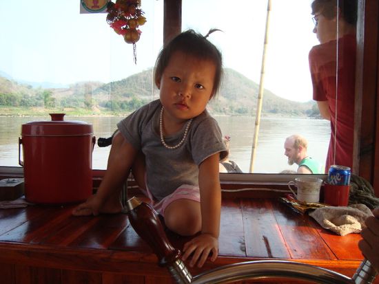 Das kleine Lao- Mädchen hielt den Kapitän die Fahrt über ordentlich bei Laune,