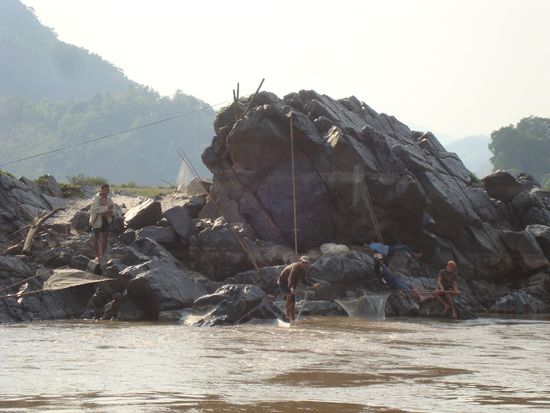 ..Fischer bei ihrer alltäglichen Arbeit, eine Menge sich im Wasser tümmelnde Wasserbüffel, verwirrte Blicke mancher Dorfkinder bei Anbetracht der vorbeituckernden Schar Fremdlinge auf dem Boot, einen photografiersüchtigen von backbord nach steuerbord und retour eilenden Russen und so manches mehr zu bieten.