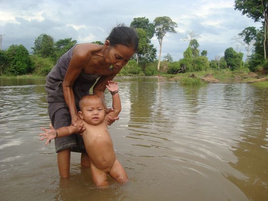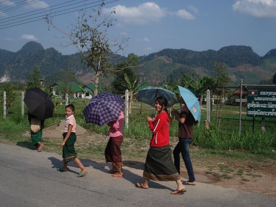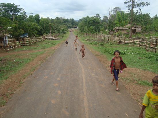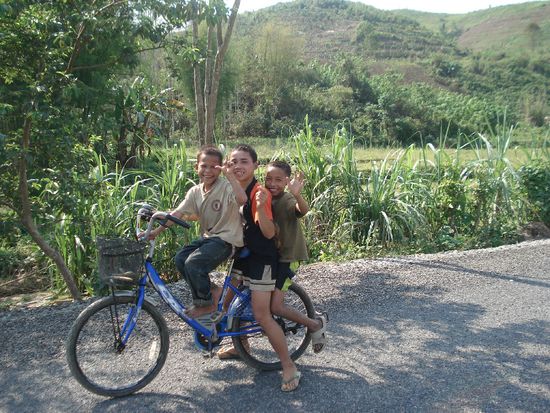 Was in Laos beim Radfahren auch hohen Motivationsfaktor verspricht, sind die vielen kleinen Kinder, die scheinbar nur an der Straße stehen, bis ein fremdes Wesen vorbeifährt um dann euphorisch "saba dii" zu schreien. Macht wirklich Freude!