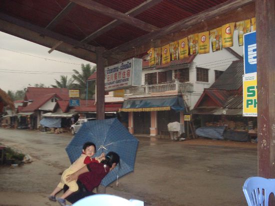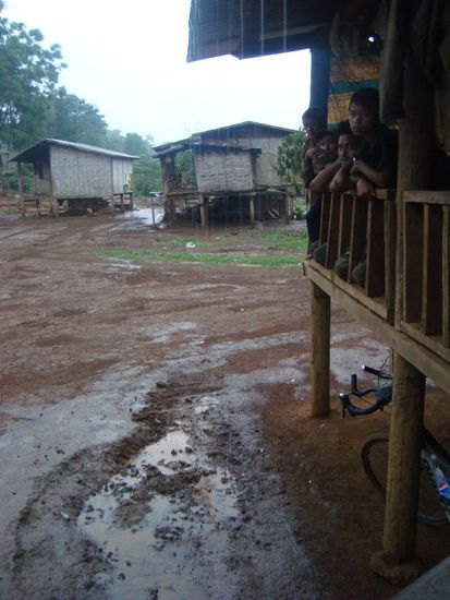 Den Monsun hatte man eigentlich erst auf Mai bestellt, doch daran hält er sich nicht immer. Jedenfalls war die Nacht und auch der Morgen vor der Weiterfahrt in Pak Mong Richtung Luang Nam Tha im Nordwesten über Oudomxay Himmelsdusche satt.