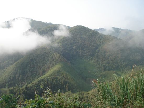 Zurück in Xam Neua, führte die Busfahrt, bei deren Geschwindigkeit man ebenso gut hätte nebenher radeln können und aufgrund defekter Gangschaltung die Gänge suchenden Busfahrer, meist bei 5 km/h die Berge hinauf,..