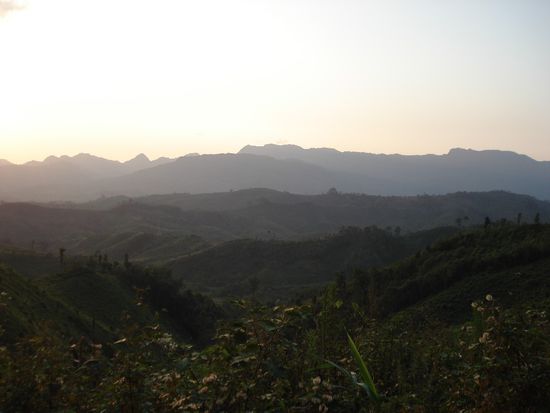 Nach 150 km, zwei Pässen hinauf auf über 1500 Meter und ab Oudomxay abwechselnen Teer- Stein- Schlammpisten und Wasserlöchern, lief mein Akku an diesem Tag leer und so setzte ich mich in Na Mor in einen rettenden Bus nach Luang Nam Tha.