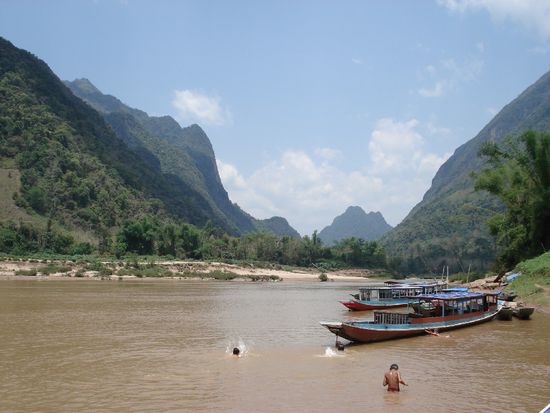 Nong Khiaw ist der geeignete Ausgangspunkt für eine Bootsfahrt den Nam Ou river hinauf nach Muang Ngoi, einem süßen abgelegenen Laodörfchen, zu dem keine Straßen führen.