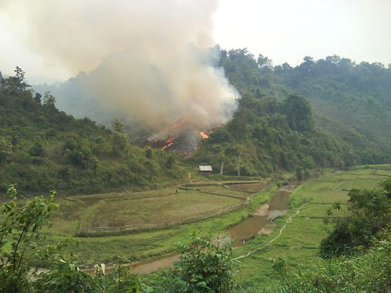 Vieng Thong erreicht, war das Glück einmal mehr auf meiner Seite, denn es fuhr tatsächlich noch ein erhoffter Bus die 150 km nach Xam Neua im Nordosten Laos. Der Busfahrer versuchte sich an einer neuen Rekordzeit und so war Festhalten auf den ausgelutschten Kunstledersitzen angesagt. Einzig einmal fand ich mich auf dem Boden wieder, nachdem ich versuchte auf dem hintersten Sitz mich schlafen zu legen und das Schlagloch meist auf eben diesen Sitzen die größte Wirkung verspricht. Jedenfalls sprach das zunächst für eine frühe Ankunftszeit, wenn denn 20 km vor Ziel nicht der letzte Sprit vom hungrigen Motor verbrannt worden wäre. Nun, zunächst öffnete der Lao- Schumi den Deckel neben dem Fahrersitz zum Motor und versuchte mehrmals, Sprit manuell anzupumpen, um denn nach jeweils abnehmender Sekundenfahrt festzustellen, dass sich kein Tropfen mehr im guten Tank befand. Mitsamt meiner Fahrradleuchte verschwand er in der Dunkelheit, den Bus geschickt inmitten der Fahrbahn platziert und kehrte denn auch schon nach 15 Minuten mit einem vollen Benzinkanister zurück. Für uns drei Fahrgäste und den genervten Fahrer war somit Sam Neua gerettet.