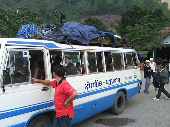 Ja das war Party Lao'la, und so hielt sich die Trauer um das entgangene Osterfest auch in Grenzen. Am Morgen nach der langen Nacht führte die Reise zunächst auf Blacky zunächst zurück nach Luang Nam Tha, von dort mit einem Bus nach Oudomxay und weiter mit einem Minibus nach Nong Khiaw.