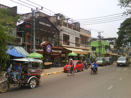 In Laos ist der französische Einfluss vielerorts deutlich spürbar in Architektur, Straßenführung, Namensgebung udgl., daher ein kurzer Einblick in die Historie. Ab dem 14. Jahrhundert wuchs das Lan Xan Königreich mehr und mehr, verdrängte andere Königreiche, erreichte im 17. Jahrhundert das größte Ausmaß zur größten Macht in Südostasien. Ab dann verfiel es mehr und mehr unter der Macht der Siamesen , die das Gebiet des heutigen Lao als Pufferzone gegen die zunehmenden Franzosen verstanden. Die Franzosen vertanden eine geschickte Taktik einer Mischung aus süßem Gerede und Kanonenboot- Diplomatie um die Siamnesen zur Aufgabe aller Gebiete östlich des Mekong zu zwingen. Laos war somit geboren. Die Franzosen taten reichlich wenig für Laos, erlaubten einzig die Opiumproduktion um für die Verwalter Berühmtheitgrad für den Träumer- Lebensstil zu erreichen. Die erste nationalistische Bewegung gab es schließlich nach dem Abzug der Japaner am Ende des 2. Weltkrieges um das Land zu den französischen Regeln zurückzuführen. Die Franzosen kamen zurück und verschwanden 1953 im Guten Sinne. Ab dann war Laos gute 20 Jahre lang bis 1973 der Theaterschauplatz des geheimen Krieges, in dem die Nordvietnamesen Unmengen Kriegsmaterial in den Osten Laos schafften und die USA dort ihre größte Bombardierungsoffensive aller Zeiten startete. Nun, soweit zur Geschichte. Im Moment befindet sich das noch immer kommunistische einparteiengeführte Land in einem Umbruch und erfährt zunehmend westlichen Charakter.