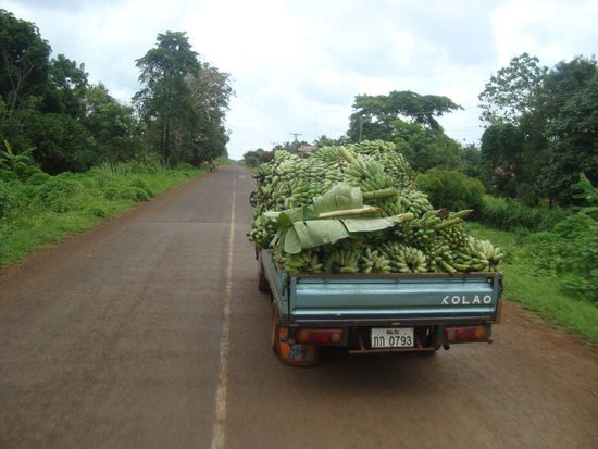 Nun, wenn man dann als Radfahrer hinter einem Bananenlaster herfährt und weiß, wie energiereich dieses gute Obst ist, so hofft man natürlich auf eine herabfallend Straude. Das Obst hielt sich gut fest und so kam der Energieschub nicht zustande.