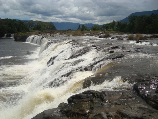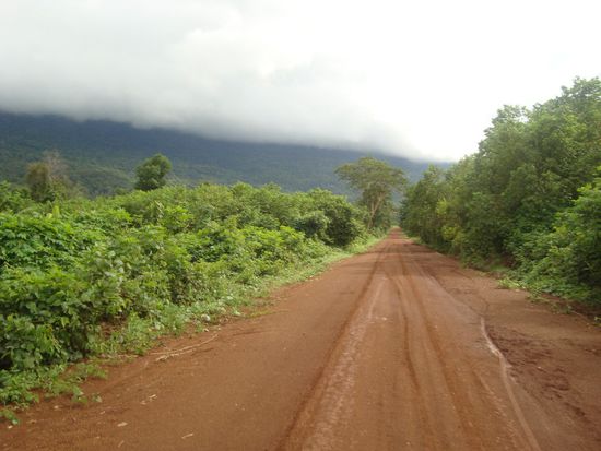 ..und nach einer Stunde Regenwartezeit in Richtung Plateau auf stolze 1200 m Höhe. Dieses riesige fast ebene Gebiet das reinste Phänomen, da es sich von aller umgebenden Landschaft weit abhebt und ein völlig anderes Leben verspricht. Der völlig durchnässte Sandweg ließ die Reifen z.T. tief eingraben und machte schnelles Vorankommen unmöglich, beglückte das ein oder andere Mal durch schönste Wasserfälle in unberührter Landschaft. Aber hier war der Jungle und das ließ nicht müde werden, denn wer möchte schon ohne Zelt im Jungle übernachten?