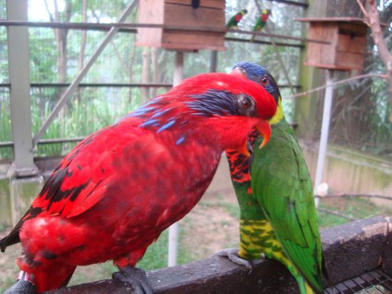 einen Vogelpark mit ganz bunten Quarälern,..