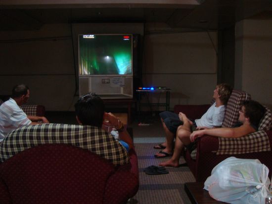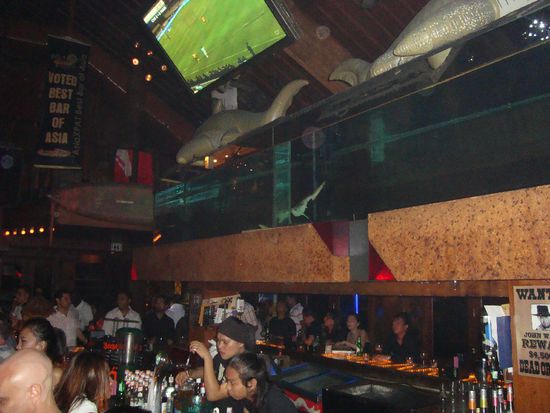 Seht ihr's im Hintergrund geschrieben? Der Beach Club ließ wahrlich den müdesten Krieger nicht so schnell Flucht ergreifen. Da gabs Lifemucke, Mädels, 2 Katzenhaie im Aquarium und Fussball für die, die das alles kalt ließ.