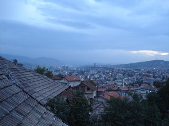 Die Bleibe war nicht ohne Überwindung einiger Höhenmeter zu erreichen, die Aussicht von der Terasse ueber die Dächer Sarajevos ließ aber nichts bereuen.