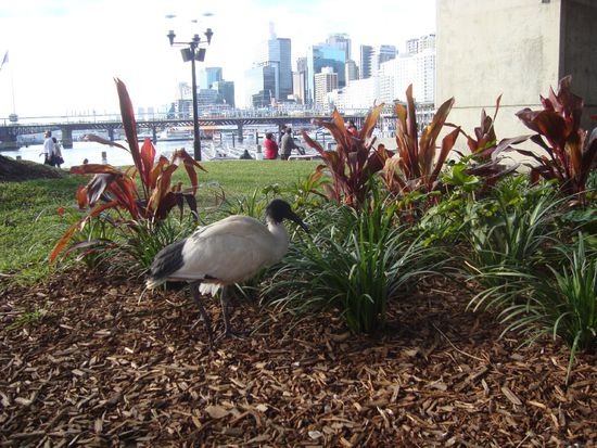 und vielleicht habt ihr auch schon einmal diesem typisch australischen Prachtkerl hier ein wenig Aufmerksamkeit geschenkt. Der "Weiße Ibis" scheint Sydney wahrlich zu lieben, so oft wie er hier insbesondere am Darling harbour herumstolziert.