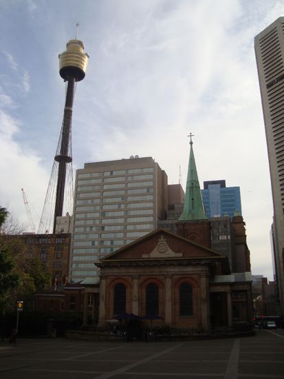 So drehten wir eine Runde entlang Darling harbour, der St. Andrews Kathedrale, der Commonwealth bank, dem Sydney tower und manchem mehr und "hatten dann fertig" mit spazierengehen, denn meine Füsse waren von den Chinamark- Schuhen reichlich wundgelaufen. Die Falsche Schuhwahl.