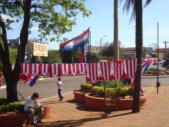Straßenmärkte wo man hin schaut..ich liebe es so! Das hat hier fast schon etwas wie in Kambodscha, witzig, da fühlt man sich fast wieder zurück in asiatischen Gefilden. Die beiden ergatterten T-Shirts und das Essen konnte man auch problemlos in brasilianischen Riel bezahlen, die Leute waren sehr liebeswert..Paraguay..kurzes Fazit: symphatisch!!