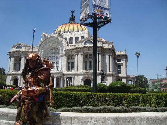 über Bauchredner, Jongleuren, lebenden Statuen oder wie hier diesem ganz schrägen Vogel vor dem Palacio de bellas artes..