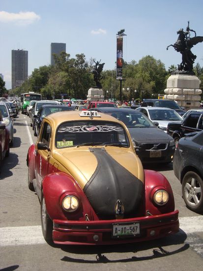 Noch bis 2002 lief der Knuddelbeatle hier in Mexiko übers Band, und als Taxiversion tut er hier noch ausgesprochen oft seinen Dienst, kaum eine Minute in der er nicht den Weg kreuzt.