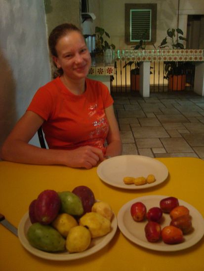 Claudia kommt ebenfalls aus Deutschland und ist hier Dauergast, denn sie schreibt derweil ihre Magisterarbeit über die Schrift der Maya. Sie gab uns eine Einweisung über die Vielfalt der leckeren für zusammen 20 peso eingekauften mexikanischern Früchte: Ciruelas, Guyavas und Tunas- mann, waren die lecker und süß!