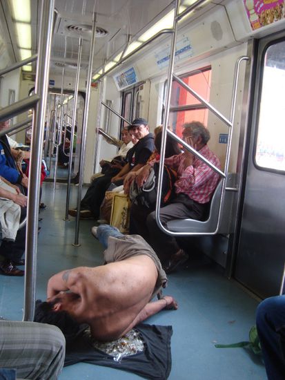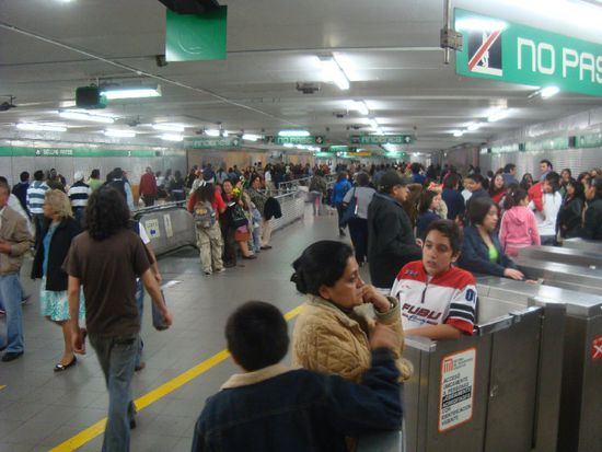 Die Subway hat mit 5 Mio. Reisesüchtigen das mit größte Passagieraufkommen der Welt. Für 2 Pesos kann man sich hier unter der Stadt von einem Ende zum anderen kutschieren lassen, dabei sei angemerkt, 20 Peso sind gerade mal 1 Euro. Lange Wartezeiten gibt's ned, die Züge fahren alle 5 Minuten.