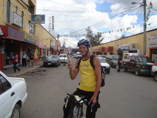Gott war ich froh, als ich mich dann endlich wieder auf bekanntem Terrain in der Stadt befand, denn auf dem Rückweg verpasste ich die Abfahrt und musste mich lange Zeit von einem LKW nach dem nächsten hauchdünn passieren lassen. So mulmig war's mir beim radeln noch nie. Die Mexikanischen Brummifahrer fegen wahrscheinlich alles von der Straße, was ihnen nicht gefällt.