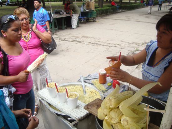 Ebenfalls typisch mexikanisch: Mazorca oder "Los Colbos" , so wie die Kenner dazu sagen, ist ein goldbraun gegrillter Maiskolben mit Kräuterbutter überzogen und Gewürzen darüber. Mais ist eine der wichtigsten Grundnahrungsmittel generell der Mittelamerikaner. Als die Mayas vor über 5000 Jahren mit dessen Kultivierung begannen, galt Mais als geradezu göttlich.