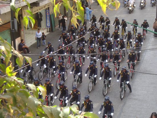 und tagsüber zeigt eine Straßenparade unter anderem vorbildliche Polizisten zu Drahtesel..(klar hätte sich Blacky am liebsten mit drangehängt)..