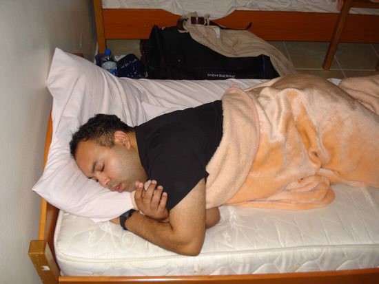 Im Hostel angekommen, gabs dann gleich nachts noch das Frühstück um halb 3, da am nächsten Morgen frühstücken aufgrund des Ramadan untersagt war. Im Bett bequem gemacht, setzte dann auch schon gleich das Schnarchen dieses Herrn ein