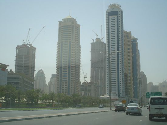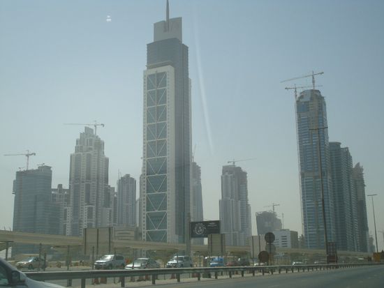 Vorbei am bereits um Weiten weltgrößten Gebäude der Welt, dem Burj Dubai. Misst mittlerweile gut 800 Meter und die Spitze ist noch nicht drauf.