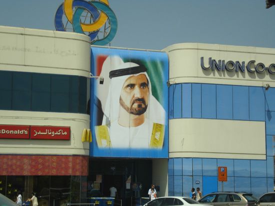 Dies der Scheich der Vereinigten Arabischen Emirate Mohammed Bin Rashid Al Maktoum oder so, das Gesicht prägt sich beim Herumfahren ein.
