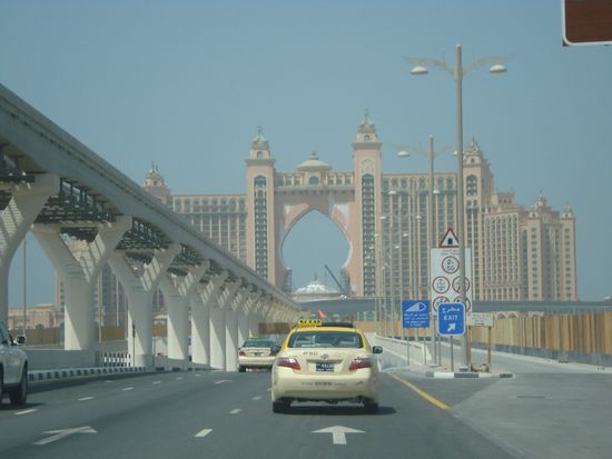 Die Fahrt auf der Palm Jumeirah zum äußeren Ring..