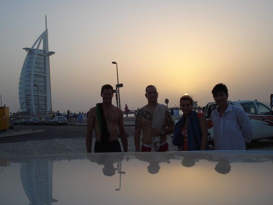 Über Nacht und am nächsten Morgen trafen dann noch andere Dubaiexplorer ein, von links nach rechts Frank, ich , Esther , Morne aus Südafrika und Sara (hier nicht auf dem Bild),(sahen schon alle ein wenig übernächtigt aus.. die Tage drauf fuhren wir mit einem Mietwagen (hier nur knapp 25€ am Tag) die gesamte Gegend ab.