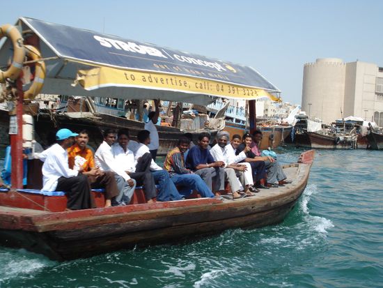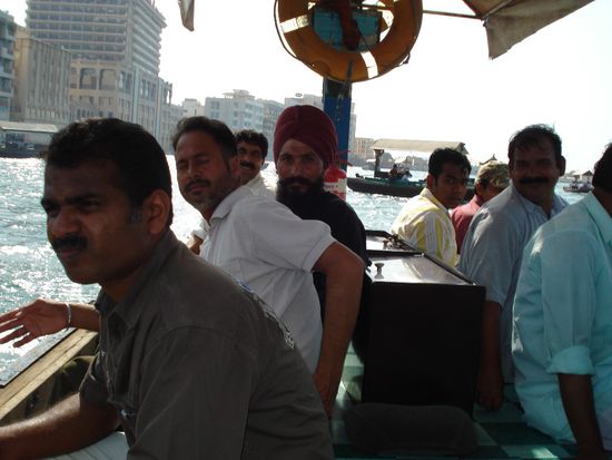 Den Dubai Creek überquert man in der Altstadt Dubais Al Ras für 1 Dirham (20cent) mit einem von vielen Dutzend motorgetriebenen Bötchen, ist echt eine Gaudi.