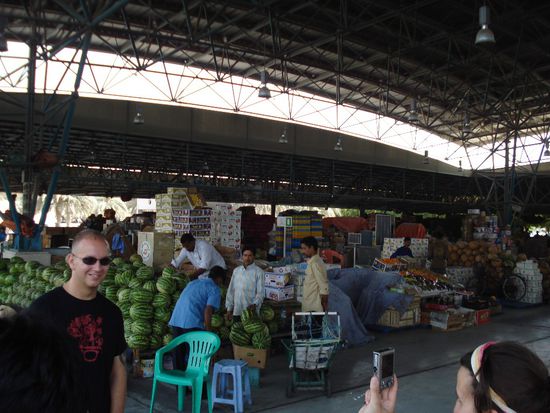 Der Fruit- and Vegetablemarket, ich hatte in Dubai wahrscheinlich einen Bandwurm, jedenfalls aß ich den ganzen Tag, auch den Rest der Familienpackung des KFC von Frank. Deckte mich hier im Gegensatz zu den anderen dreien fleißig ein, hatte dann aber auch ne Menge zu futtern die Tage drauf. Machte auf die Drei den Eindruck ener Fressmaschine, denke ich hatte nur meinen Kalorienhaushalt nach dem Europaradeln wieder zu begleichen.