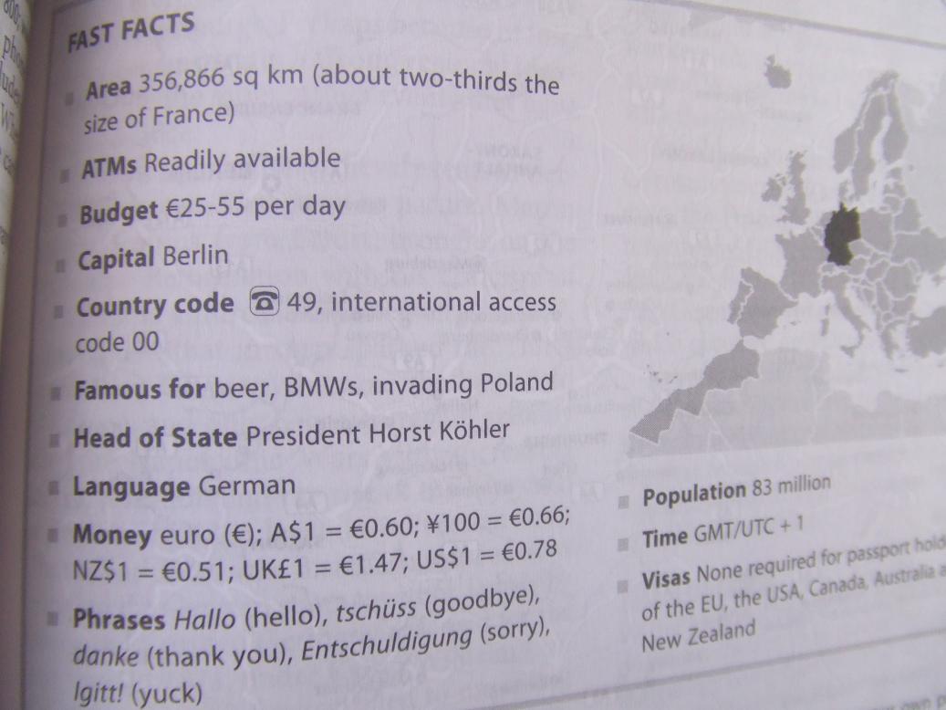 Fuer was ist Deutschland wohl laut Lonely Planet beruehmt? / Przewodnik po Europie i z czego slynna Niemcy...