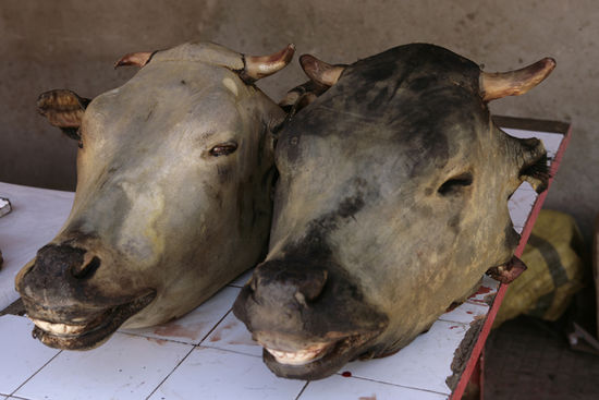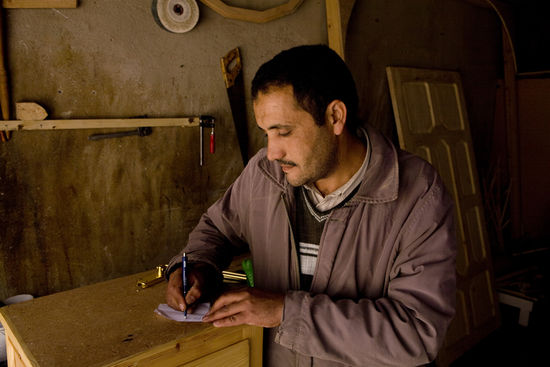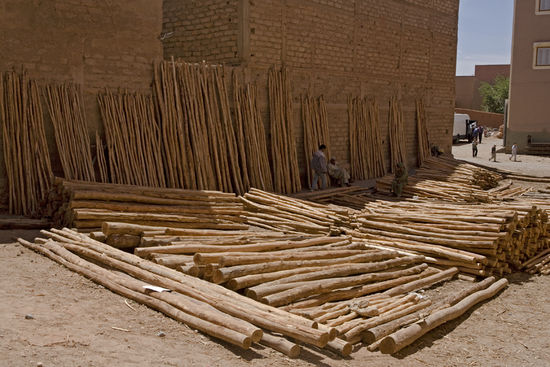 Allerdings unlogisch für mich, ich brauche keinen Teppich und gehe stattdessen durch den Ort, zu den Metzgern, die Rinderköpfe und Schafsfüße auf den Tresen oder den Fußboden gelegt haben, umrahmt von Ziegenköpfen, Gedärmen, Mägen, Hoden und anderen leckeren Dingen, zu den Tischlern, die Holzberge vor ihren Geschäften liegen haben und zu den Schlossern, die auf der Straße Türrahmen schweißen. Einer der Schlosser bittet mich um ein Foto und schreibt mir etwas mühsam seine Adresse auf. Zur vereinbarten Abfahrtszeit gehe ich der Gruppe entgegen, die immer noch im Teppichladen herumfeilscht. Ich gehe hinein - und zusammen mit den anderen und mit einem schönen rot-weißen, professionell zusammengerollten Berberteppich wieder hinaus.