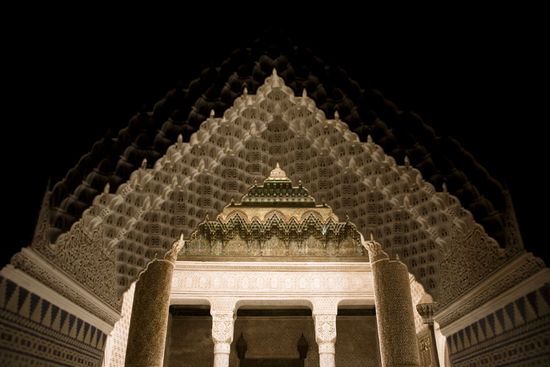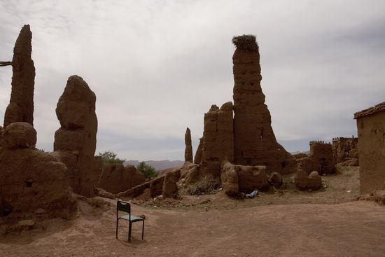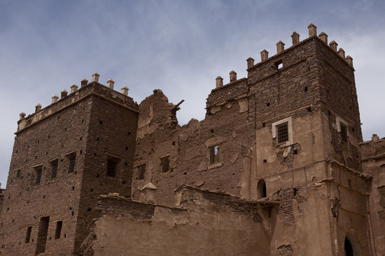 Die Ruine der Kasba, die bewusst nicht renoviert wird, liegt in einem flachen Tal. Zum Teil stehen nur noch die Lehmmauern und die Reste der Türmen. Das zentrale Gebäude ist aber noch relativ gut erhalten. Prächtige Stuckarbeiten und Mosaiken, geschnitzte Türen und sogar noch Seidenteppiche an den Wänden künden davon, welch illustre Gesellschaft einst hier hauste und sich ein Stelldichein gab. Telouet ist ein eindrucksvolles Zeugnis dafür, wie unglaublicher Reichtum und Luxus in kurzer Zeit verfallen kann, wenn die Macht, die sich auf Gewehrläufe stützt, dahin ist.
