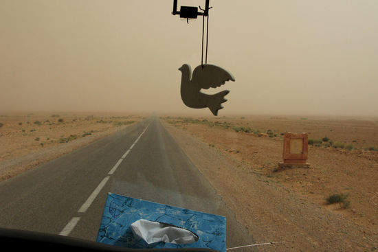Der hohe Atlas ist ein imposantes Gebirge mit tiefen Schluchten und folgerichtig auch mit großen Höhen. Die Straßen winden sich endlos den Berg hinauf und die schweren Laster fahren bergauf wie bergab mit höchsten 5 Kilometer in der Stunde. Sehr nervig, wenn der Bus hinterher kriechen muss. Auf dem Pass und an anderen exponierten Aussichtsstellen haben Händler ihre Stände aufgebaut und bieten die schönsten Mineralien und Fossilien an. Um uns vor einem Kaufrausch zu bewahren, blieb der Bus nur eine Minute stehen, gerade genug Zeit, um das Schild mit dem witzigen Passnamen Tizi-n-Tichka aufzunehmen.
