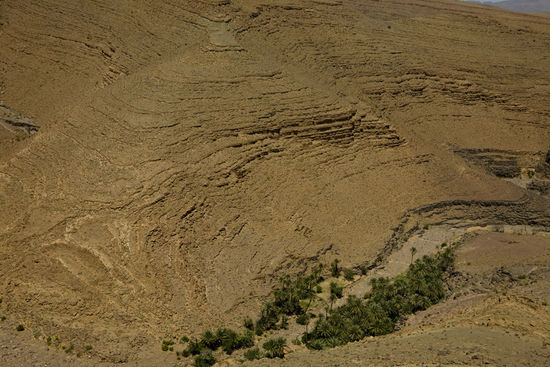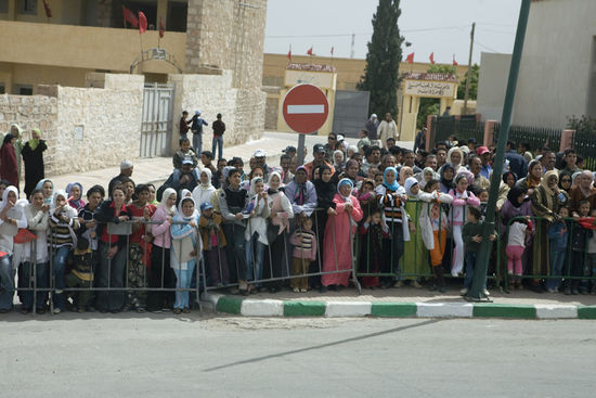 Am schönsten ist der mittlere oder Antiatlas. Er ist richtig kahl, braun, grau, wüstenhaft. Die Berge haben so gut wie keine Vegetation, sind aber dennoch wegen der geologischen Ablagerungen, Falten und Verwerfungen hochinteressant. Unsere Aufmerksamkeit galt aber nicht nur der Natur, sondern auch den beflaggten Straßen und Ortschaften. Der König von Marokko geruhte an selbigem Tag dieselbe Region zu besuchen wie wir. Wir sahen ihn zwar nicht, dafür aber die Menschen, die Fähnchen schwenkend am Straßenrand warteten und die Flotte schwerer Motorräder und Jeeps seiner Leibwache und mehrere Ambulanzwagen. Vor einem Gebäude standen einige dicke, schwarze, protzige Mercedes-Limousinen. Das war wohl der Moment, wo wir seiner Majestät am dichtesten auf die Pelle gerückt waren. Mohammed VI hat sich offensichtlich Harun al Raschid zum Vorbild genommen. Er reist zwar nicht anonym wie der berühmte Kalif von Bagdad, aber durchaus vergleichbar durch das Land, um Missstände aufzuspüren und umgehend zu beheben. Angeblich hat er, als er in einem Krankenhaus den Chefarzt nicht vor fand und man ihm sagte, er sei Golf spielen, diesen umgehend gefeuert. Er ist gefürchtet, dieser König, er verbreitet bei einigen seiner Landeskinder gehörig Angst und Schrecken. Uns hätte er vermutlich huldvoll zugelächelt, wenn er geruht hätte, uns überhaupt wahr zu nehmen. Sind wir es doch, die ihm die Euros und den Mercedes und die BMW-Motorräder ins Land bringen.