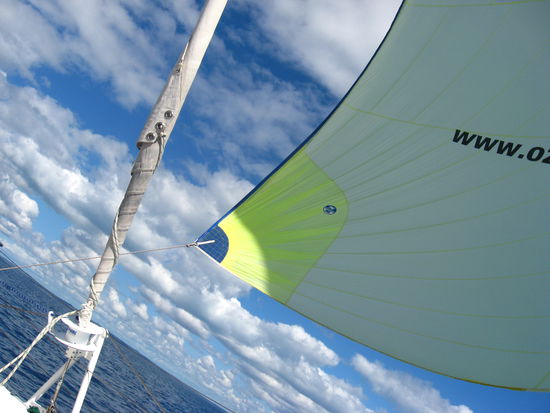 wir sind mit dem Segelboot raus und sind ganz entspannt auf Waljagd gefahren.