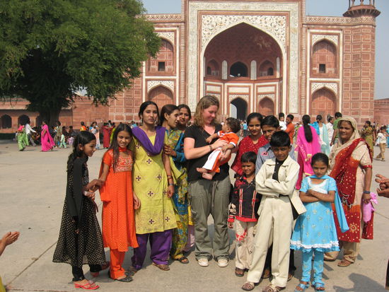 Eins meiner Lieblingsphotos, es ist wirklich unglaublich, aber ich wurde ungefaehr 30mal an diesem Tag gefragt, ob sie mich fotografieren duerfen "only one snap madame", dann stellen sie sich alle um dich herum und druecken dir die Babys in die Hand, die dich wiederum erstaunt ansehen und betasten, Inder lachen uebrigens auf gestellten Photos nicht, sie gucken immer ganz ernst, ich habe keine Ahnung warum, ich habe immer aus vollen Rohren gesmiled , bei diesem Photo habe ich das erste Mal zurueckgefragt, ob sie ebenfalls ein Photo fuer mich machen koennen, da waren sie ganz schoen erstaunt...
