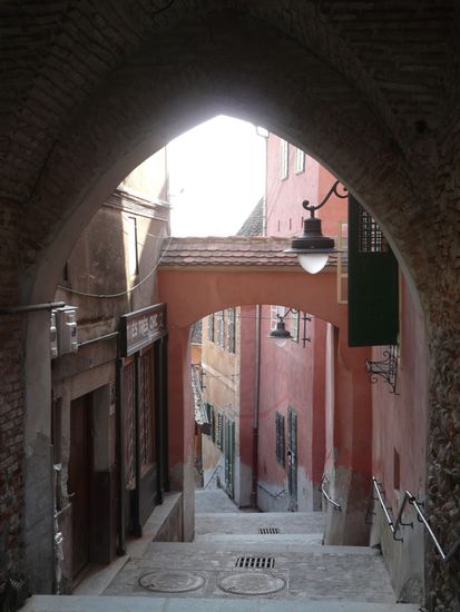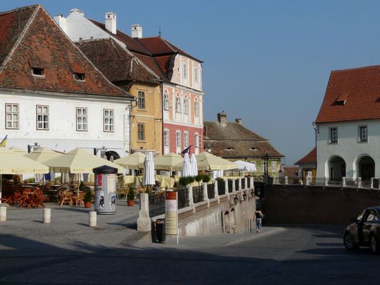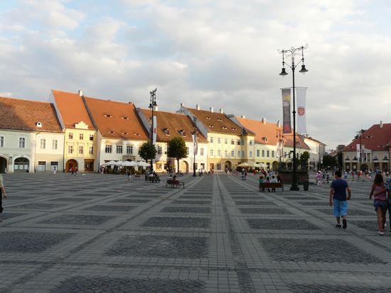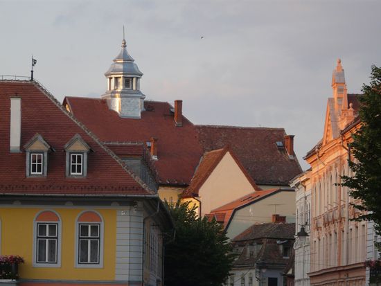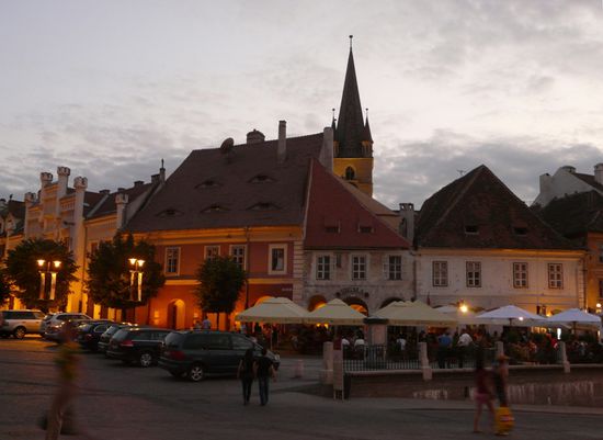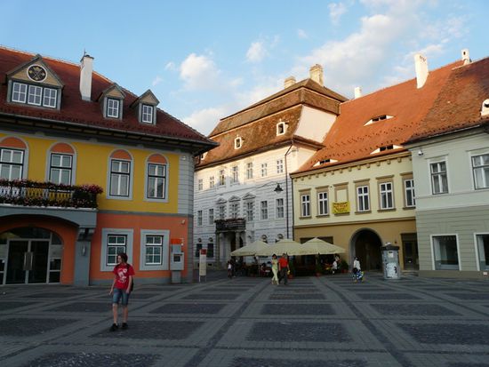 Im Abendrot erkunden wir das erste Mal den renovierten Teil der europäischen Kulturhauptstadt 2007 - des ehemals "sächsischen" mittelalterlichen Hermannstadt.