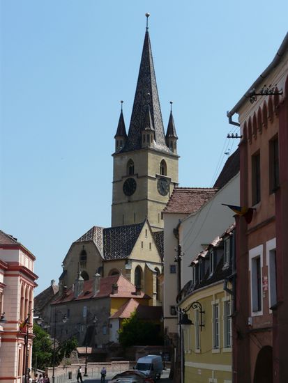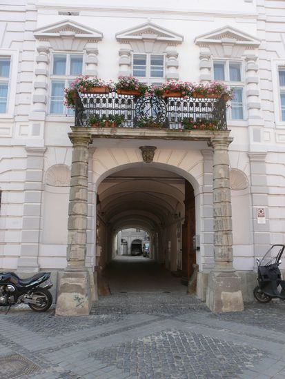 In Sibiu übersehen wir Gott sei Dank die richtige Abzweigung. Die hätte uns nie und nimmer zum Ziel geführt. Schon überhaupt, da auch in Sibiu kaum Straßenbezeichnungen vorhanden sind. Nach der zweiten Ehrenrunde parke ich mich nur ein Eck vom Bischofspalais ein.