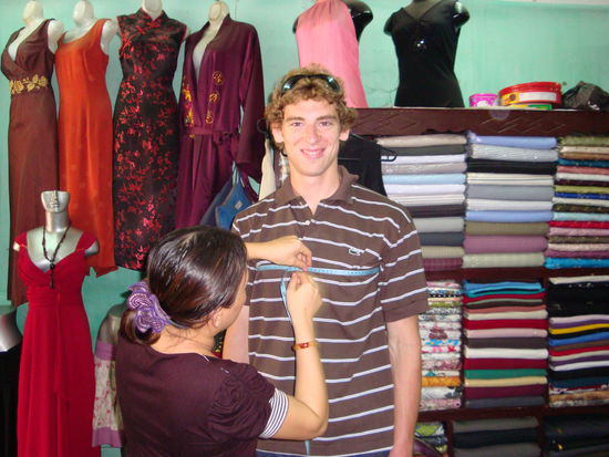 Hoi an empfing uns ersteinmal mit einem regenschauer, welcher aber zum glueck nicht allzu lange andauerte, sodass wir unsere suche nach einem hotel oder guesthouse fortsetzen konnten. hoi an unterscheidet sich von allen staedten, die wir bis jetzt gesehen haben: sie ist sehr auf touristen abgestimmt, weshalb es unzaehlige hotels aneinander gibt. doch was die stadt dominiert sind die unzaeligen schneider-boutiquen umgeben von netten restaurants, fluessen, palmen, lagunen etc., was dem ganzen einen gewissen charme verleiht. so kamen auch wir nicht an den vielen schoenen ausstellungsstuecken vorbei, sodass wir uns bereits im ersten geschaeft mit jeans und hemden eindeckten. bereits einen tag spaeter konnten wir unsere massgeschneiderten sachen anprobieren und stellten mit freuden fest, dass sie perfekt sassen und gut aussahen. und das alles, fuer unsere verhaeltnisse, zu spottpreisen!! jiiipii!! so war es nicht verwunderlich, als wir am gleichen tag in ein anderes geschaeft gingen, um uns noch mehr sachen schneidern zu lassen (kaschmir-hosen und wintermantel). wenn wir nicht gerade einkauften, radelten wir gemuetlich durch die gegend und zum nahegelegenen strand, wo wir uns von den shopping-strapazen erholen konnten hehe! abends gabs extrem leckeres essen und extrem guenstiges fassbier (20 cent/glas), welches wir uns zusammen mit dem australier jeremy, den wir bereits in der halong-bucht trafen, schmecken liessen.
