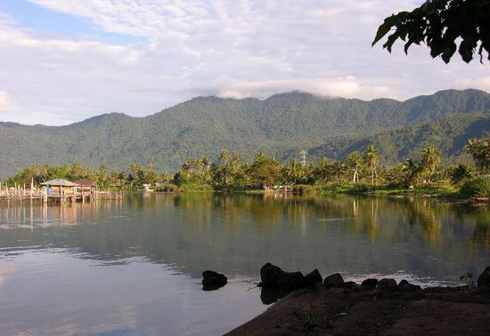 Es war ein traumhaft sonniger Tag heute und die Ausblicke auf den See waren noch einmal überwältigend. Ich fuhr die gut 10 km um die Nordseite des Sees herum und bog dann rechts ab in Richtung Küste. Es folgte eine ca. 15 km lange Abfahrt durch ein schönes Tal, und bei Lubuk Basung war dann die Küstenebene erreicht.