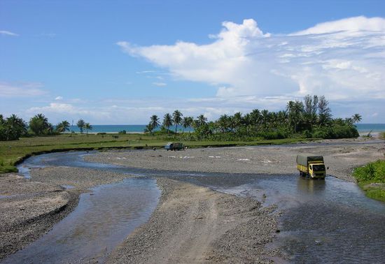 Die ersten knapp 40 km zwischen Tiku und Pariaman führte die Straße nah am Meer entlang, eine typisch tropische Küstenlandschaft, teils mit Ausblicken auf den blau funkelnden Indischen Ozean, wenn auch die grauen Strände nicht sonderlich einladend waren. Die restliche Strecke bis Padang verlief dann weiter im Landesinneren, war jedoch weiterhin flach, und der Belag war wesentlich besser als auf dem Trans-Sumatra-Highway. Die Straße nach Padang hinein war allerdings sehr stark befahren.
