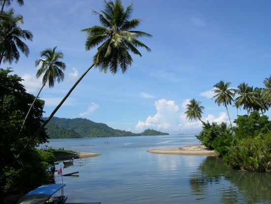 Die letzten 40 km waren dann, von seltenen, kleinen Steigungen abgesehen, flach, durch den stark besiedelten, wo man als Fahrradtourist eine absolute Sensation darstellt. Die meisten Radfahrer scheinen sich auf den Trans-Sumatra-Highway zu beschränken, doch diese Strecke ist landschaftlich durchaus ebenfalls sehr reizvoll und vollkommen abseits der Touristenpfade. Die Qualität der Straße ist auch hier sehr wechselhaft, mit ordentlichen und grauenvoll holprigen Teilstücken. Nach 100 km hätte es ein wunderbar einladendes Strandresort zum Übernachten gegeben, welches leider geschlossen hatte. Ansonsten gab es nach Painan keine Übernachtungsmöglichkeiten mehr bis Kambang, wo es eine einzige Absteige hinter dem Markt gab, die ich ohne Hilfe nie gefunden hätte. Hier übernachtet garantiert niemand freiwillig. Die kleinen, stickigen Zimmer ohne Ventilator, und noch schlimmer, ohne Fliegengitter, wären schon Abschreckung genug, aber die Gemeinschaftsmandi spotteten jeder Beschreibung. Nun gut, so ist das nun einmal wenn man sich abseits der ausgetrampelten Touristenpfade bewegt. Eine kulturelle Erfahrung war es allemal und ich bin für den Rest der Reise abhärtet. Und billig war es natürlich auch : 25.000 Rp.