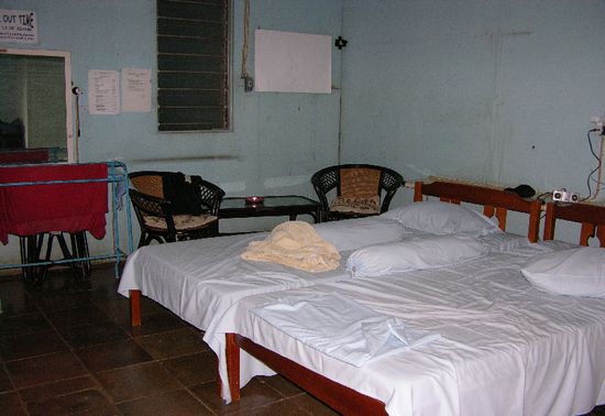Vor meinem morgigen Flug nach Jakarta, nutzte ich den Tag heute, um mich zu erholen und eine praktische Dinge zu erledigen, wie Wäsche waschen lassen, Friseurbesuch und vor allem eine Generalüberholung meines Fahrrads. Für all das war Bengkulu wunderbar geeignet. Ich hatte ein riesiges Zimmer mit Klimaanlage und Mandi mit westlicher Toilette in einer herrlich heruntergekommenen, alten Kolonialvilla für 75.000 Rp. Die Besitzerin hier ist so alt, dass sie noch holländisch spricht. Diese Unterkunft passt ideal zu Bengkulu, einem abgelegen Vorposten, ganz weit weg von allen ausgetrampelten Touristenpfaden. Für ihre Größe ist die Stadt erstaunlich verschlafen. Das alte Viertel besteht aus heruntergekommenen holländischen Holzvillen unter Kokospalmen, auf einem Hügel oberhalb der Küste steht ein altes britisches Fort und ein kilometerlanger, leerer, mäßig attraktiver Sandstrand zieht sich die Küste entlang.
